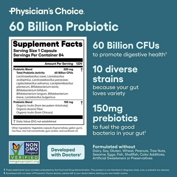 Physician’s Choice Probiótico 60 Billion – Salud Digestiva de Alta Potencia