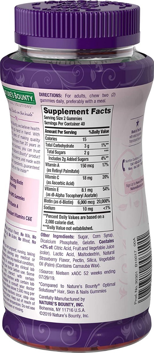 Consigue un cabello más largo, una piel radiante y uñas más fuertes con las gomitas Nature’s Bounty Optimal Solutions Advanced Hair, Skin & Nails.