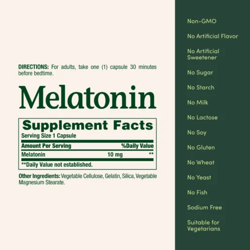 - Estas cápsulas contienen 10 mg de melatonina por porción.