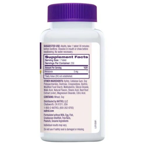 Melatonina 5mg Sabor a Fresa, Natrol, 250 Tabletas