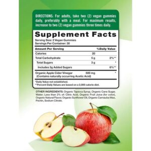 Disfruta todos los beneficios del vinagre de sidra de manzana sin el sabor fuerte y ácido. Estas gomitas son veganas, libres de gluten, trigo, levadura, lácteos, lactosa, soja y sin sabores artificiales, ideales para quienes buscan un suplemento natural y libre de ingredientes no deseados.
